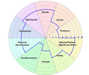 In my coaching practice, I take a holistic approach with my clients, by examining all areas of their life, as they are all inter-connected. To do this, I use a standard coaching tool, called the ‘Wheel of Life’, which allows each client to audit the eight key areas of their life. It is a snapshot of how they are experiencing their life, today. The areas are health, career, love, spirituality, family, money, fun, friends.